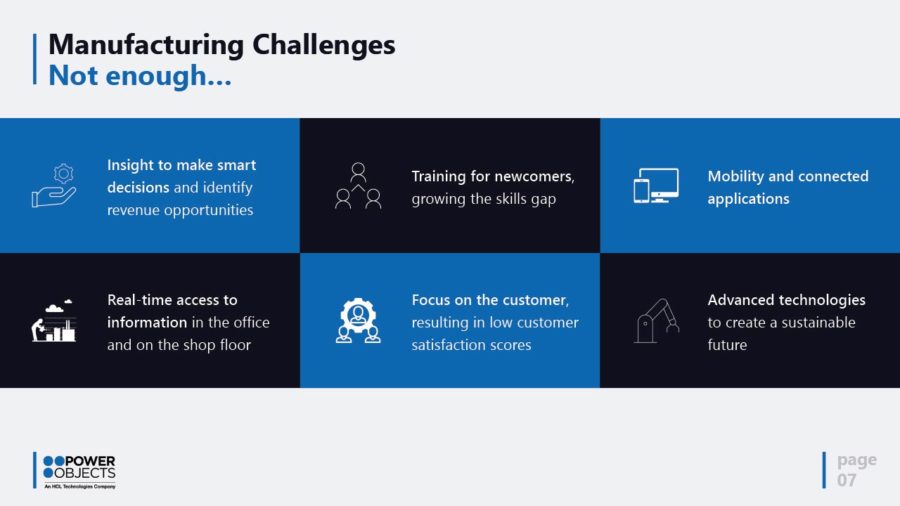 As the worldwide leader in Dynamics 365 and related Microsoft Business Applications, PowerObjects provides the expertise to help manufacturers implement smart technology to streamline value-chain processes and gain operational efficiencies.